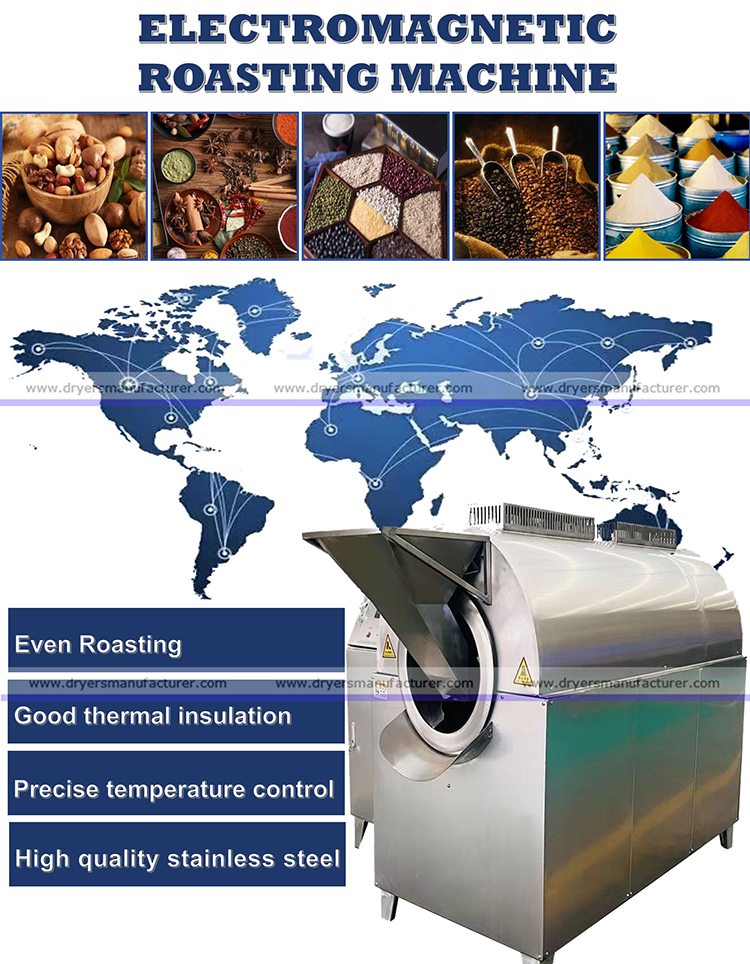 The electromagnetic roasting machine adopts an electromagnetic heating method