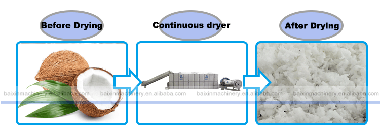 Why choose Baixin Continuous dryer for Desiccated coconut drying? Baixin continuous mesh belt dryer is a drying system specially designed by Baixin for mass production. The key to its popularity with customers is