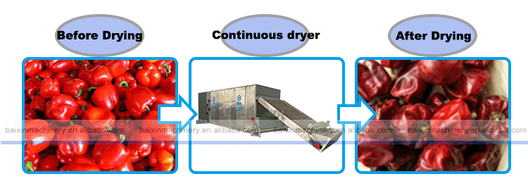 Why choose Baixin Continuous dryer for pepper drying? Baixin continuous mesh belt dryer is a drying system specially designed by Baixin for mass production. The key to its popularity with customers is