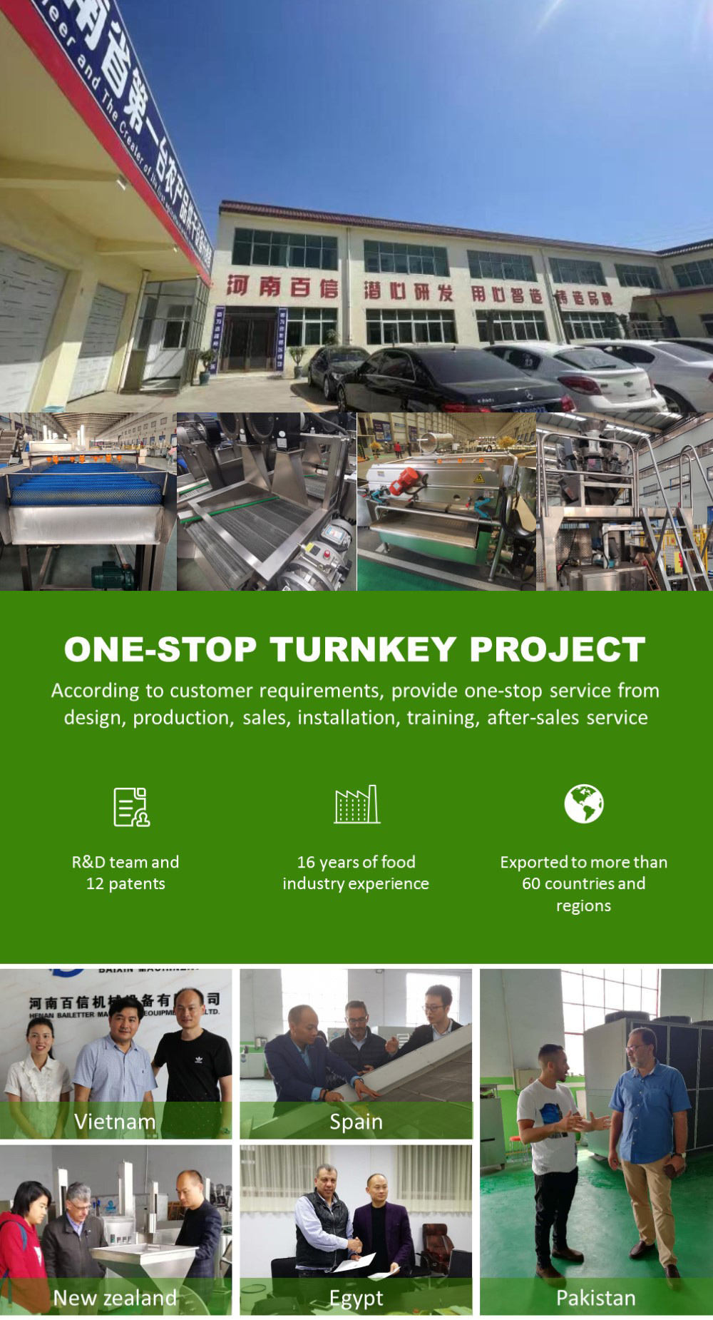 Q: Is your company a factory?A: Yes, We are a leading manufacturer of food processing in China for 16 years. Q: What are the advantages of your company? A: We're a professional food processing machinery supplier, Provide design, manufacture, installation, and after-sales one-stop service. Q: What are your payment terms? A: Normally, our payment method is T/T, 30% as the deposit; 70% as the final payment before shipping. also other payment ways. Q: What is the production circle? A: 30 working days Q: Could we visit your factory to check the machine carefully and closely? A: Highly appreciated factory visiting, will provide machine testing service, face-face discussing,turnkey project design solution