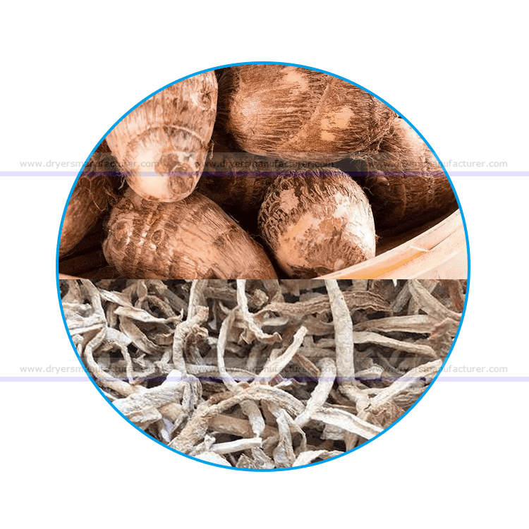 by Baixin Machinery Directions: The drying curve of taro is complex. The drying process needs to be dried in three sections of high, medium and low temperature. The baking time is 15-20 hours, and the moisture content of the finished product is below 13%.