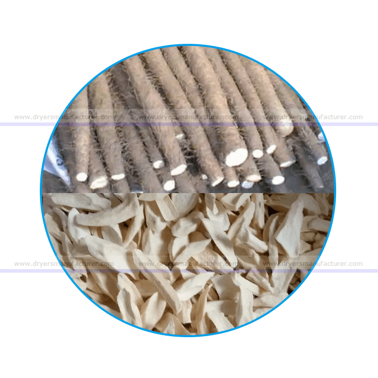 (4) The fourth stage: When the yam is close to drying, close 2/3 of the air inlet, open the return door at this time, let the part of the waste hot air with not too high temperature be heated by the heater and sent to the drying room for use. The yam has basically been used. forming