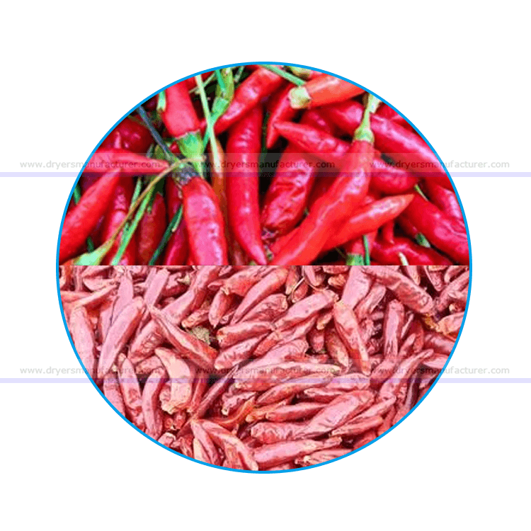 When using a chilli dryer to dry chillis, be sure to pay attention to the thickness of the material, because if it is too thick, it will not dry completely, and if it is too thin, it will overdry. According to different chili humidity, chili varieties and chili drying requirements, choose the appropriate thickness of the material.